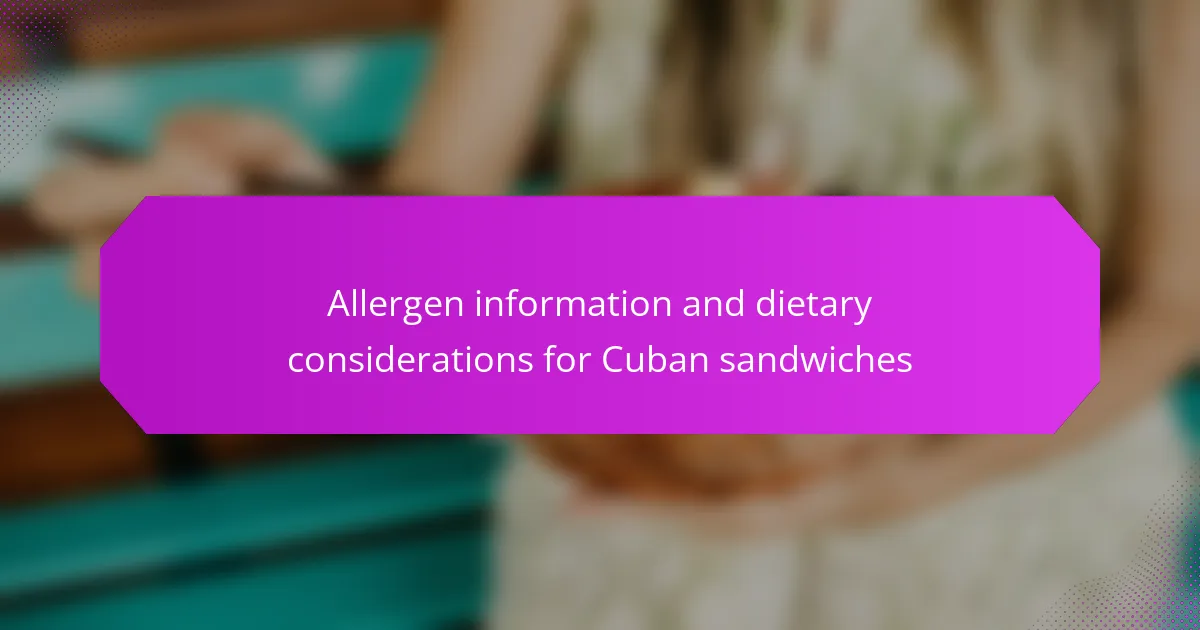Cuban sandwiches are a popular dish in Cuban cuisine, characterized by key ingredients such as Cuban bread, roast pork, ham, Swiss cheese, pickles, and mustard. This article provides essential allergen information related to these ingredients, highlighting common allergens like wheat, pork, cheese, and mustard. It emphasizes the importance of reviewing ingredient lists and asking about cross-contamination risks in restaurants for individuals with food allergies or intolerances. Additionally, the article explores dietary alternatives for those with restrictions, including gluten-free bread, plant-based proteins, and dairy-free spreads, reflecting the growing awareness of diverse dietary needs.