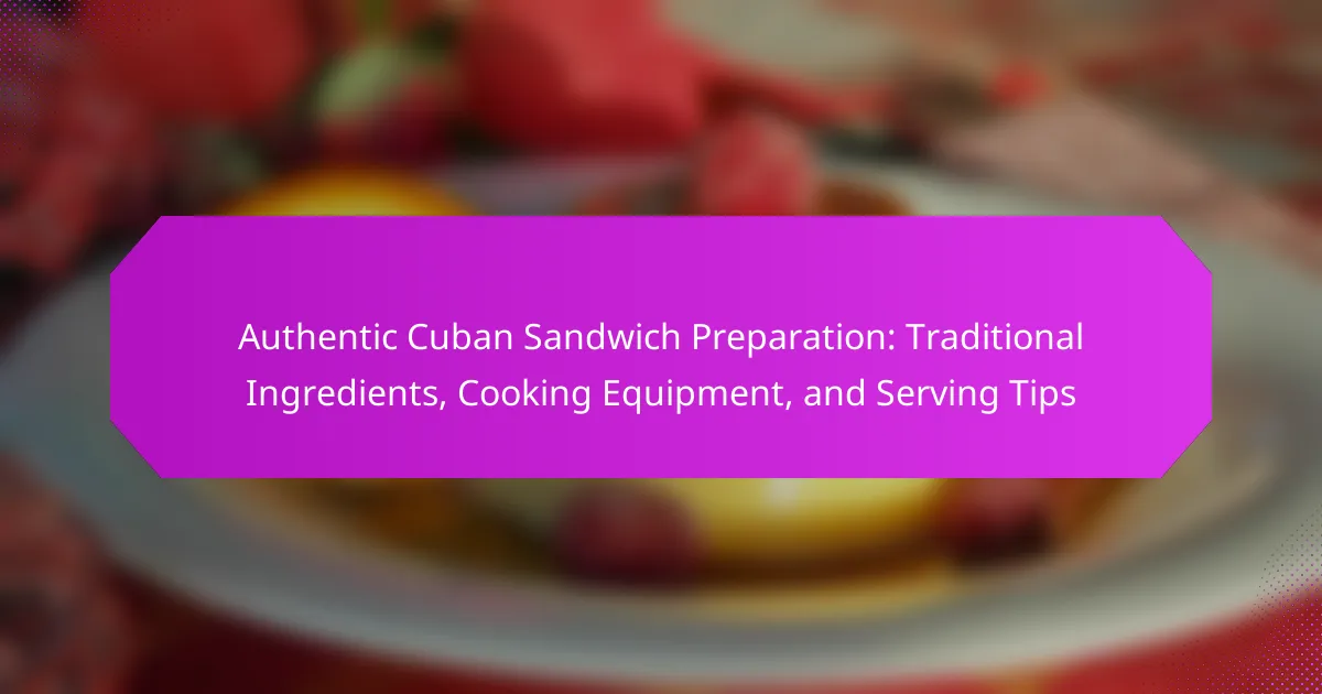 The authentic Cuban sandwich is a traditional pressed sandwich originating from Cuba, featuring layers of roast pork, ham, Swiss cheese, pickles, and mustard, all encased in Cuban bread. This article provides an in-depth guide on the preparation of the Cuban sandwich, detailing the essential traditional ingredients and the necessary cooking equipment for an authentic experience. Additionally, it offers serving tips to enhance the enjoyment of this staple of Cuban cuisine, which has gained popularity in Cuban-American communities since its recognition in the early 20th century, particularly in Florida.
