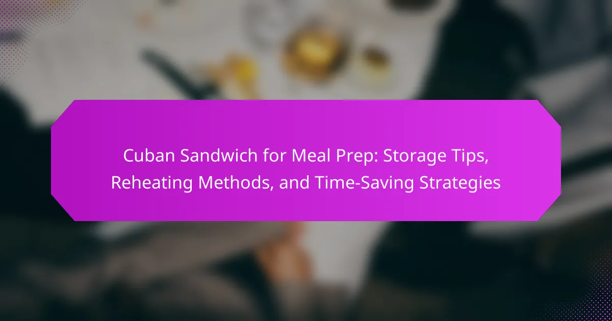 Cuban sandwiches are pressed sandwiches originating from Cuba, typically made with Cuban bread, layers of roasted pork, ham, Swiss cheese, pickles, and mustard. This article provides essential storage tips to maintain freshness, recommending methods such as wrapping tightly and refrigerating or freezing for extended shelf life. Additionally, it outlines effective reheating methods, including using an oven, skillet, or microwave, to preserve the sandwich’s flavors and textures. The article also emphasizes time-saving strategies for meal prep, such as batch cooking ingredients and utilizing a panini press for efficient assembly and cooking.