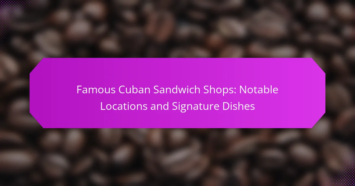 The article focuses on famous Cuban sandwich shops, highlighting notable locations and their signature dishes. Key establishments include Versailles in Los Angeles, La Segunda Central Bakery in Tampa, and Cafe Cubano in Miami, each recognized for their authentic Cuban sandwiches and quality ingredients. The article details traditional Cuban sandwich components such as roast pork, ham, Swiss cheese, and pickles, and explores variations like medianoche and pan con lechón. Additionally, it emphasizes the cultural significance of these shops within their respective cities, showcasing the rich culinary traditions of Cuban cuisine.