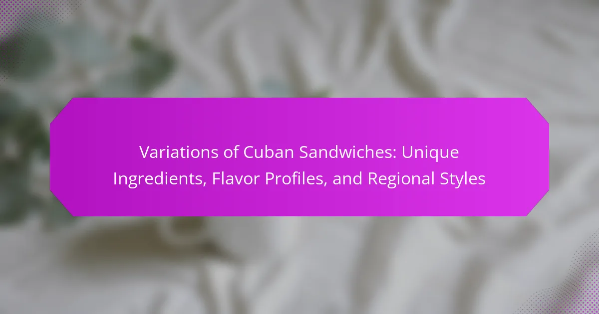 Cuban sandwiches exhibit several regional styles across Cuba and the United States. The traditional Cuban sandwich from Cuba primarily includes roasted pork, ham, Swiss cheese, pickles, and mustard on Cuban bread. In Miami, the Cuban sandwich is often made with additional ingredients like salami, reflecting the city’s diverse cultural influences. Tampa’s version includes Genoa salami and is known for its distinct flavor profile. In Key West, the sandwich may incorporate local seafood, showcasing regional culinary traditions. Each style emphasizes unique ingredients and preparation methods that reflect local tastes and cultural influences.